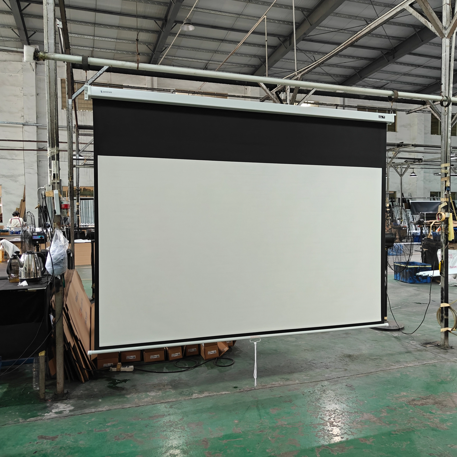 Ręcznie rozwijany ekran projekcyjny z mechanizmem samoblokującym – możliwość zatrzymania na dowolnej wysokości.