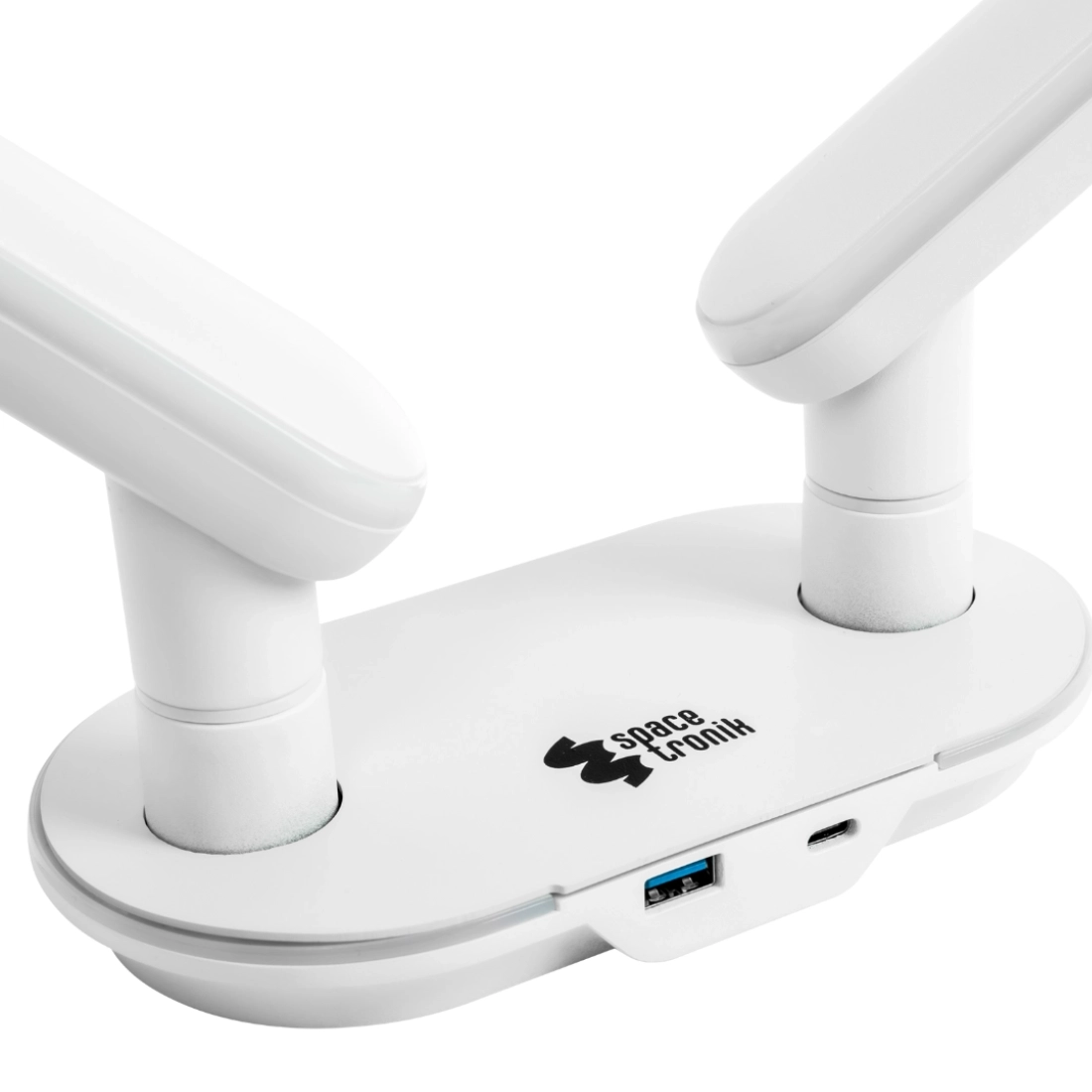 Podwójne ramię SPAF120LUW pozwala ustawić dwa monitory dokładnie tak, jak potrzebujesz: z regulacją pochylenia, obrotu i pivotem. Zyskujesz więcej miejsca na blacie, a prowadzenie kabli w ramionach ogranicza chaos i poprawia estetykę stanowiska. Quick Release VESA ułatwia montaż i demontaż ekranów, a hub USB 3.0 i USB-C daje porty pod ręką.