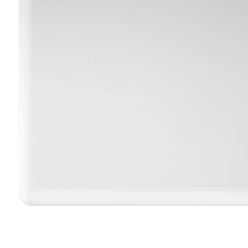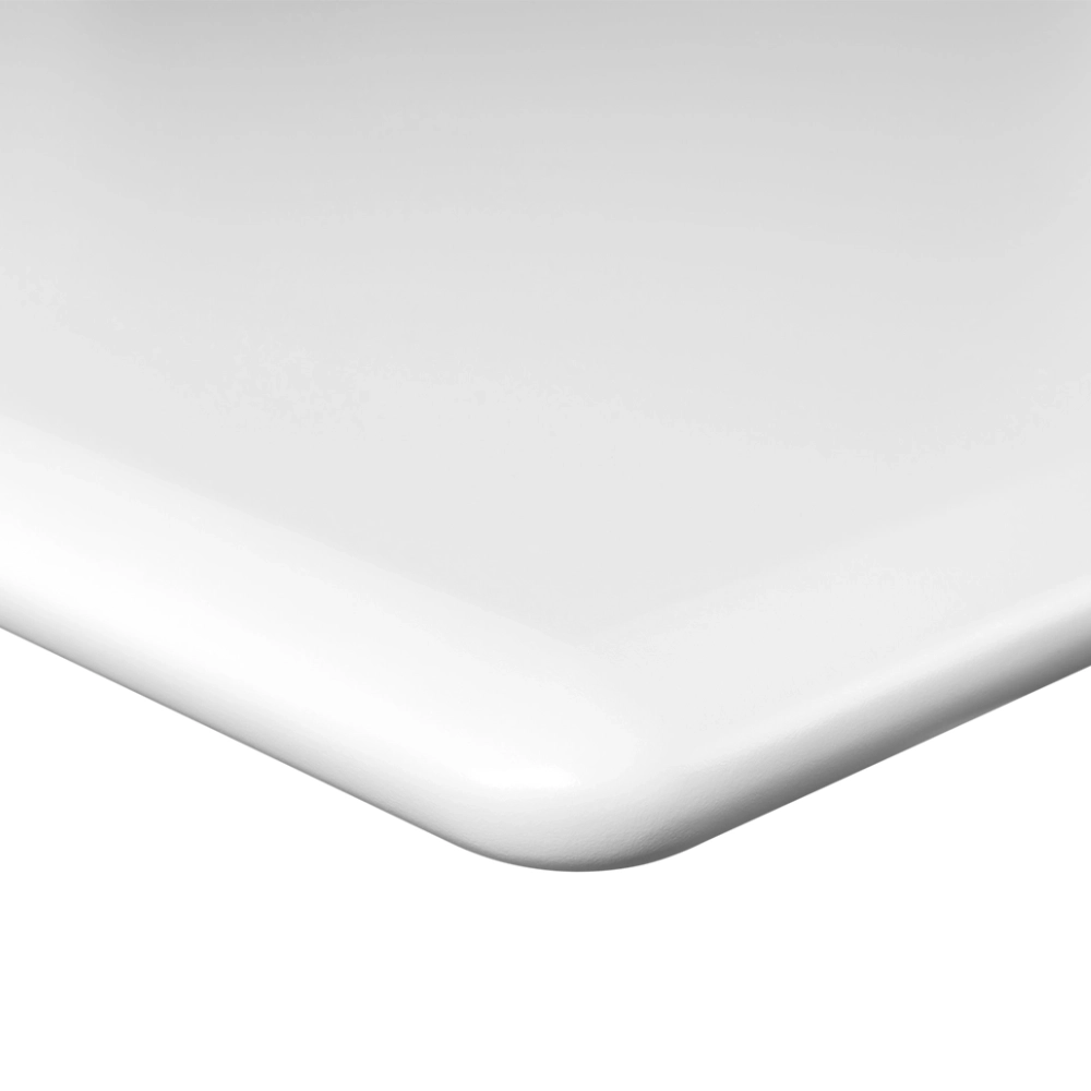 Dwa blaty w kolorze Porcelain wyróżniają się gładką, jednolitą powłoką dzięki technologii malowania proszkowego. Zapewnia ona większą trwałość, odporność na zarysowania i łatwiejsze utrzymanie czystości. Blaty mają grubość 25 mm, a zaokrąglone rogi i boki typu full bullnose podnoszą bezpieczeństwo i nadają całości elegancki wygląd. Dodatkowym atutem jest odporność na wilgoć i pleśń oraz powierzchnia wspierająca higienę (m.in. działanie antybakteryjne).