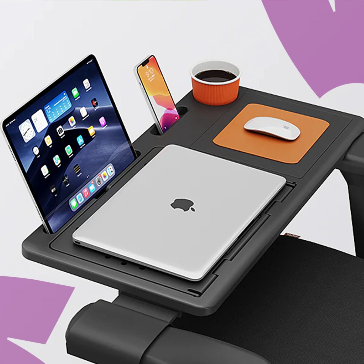 Kompletny zestaw do pracy i nauki: ergonomiczne krzesło Spacetronik LUMBO 44 z automatycznym wsparciem lędźwi, regulowanym zagłówkiem 2D, podłokietnikami 4D i wysuwanym podnóżkiem oraz nakładka SPC-LUMBO tworząca stabilny pulpit na laptopa z miejscem na tablet, telefon i kubek. Pracuj wygodnie tam gdzie chcesz i dbaj o kręgosłup każdego dnia.