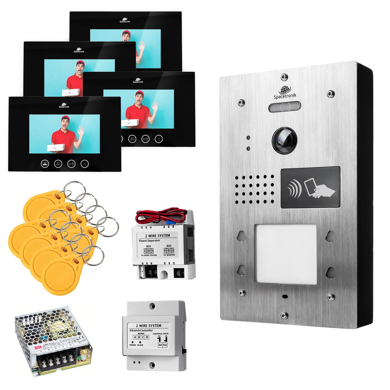 Zestaw wideodomofon czterorodzinny z monitorami dotykowymi 7" Spacetronik DiO SPD-DS814 + 4x SPD-M773B