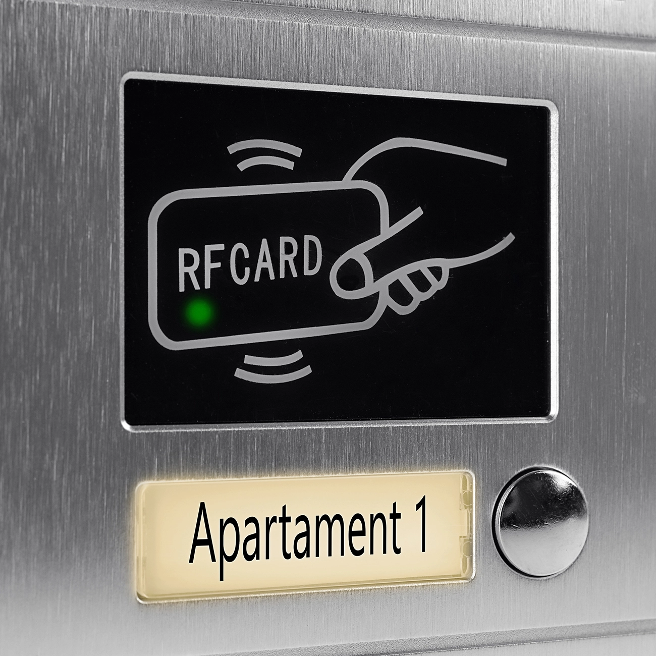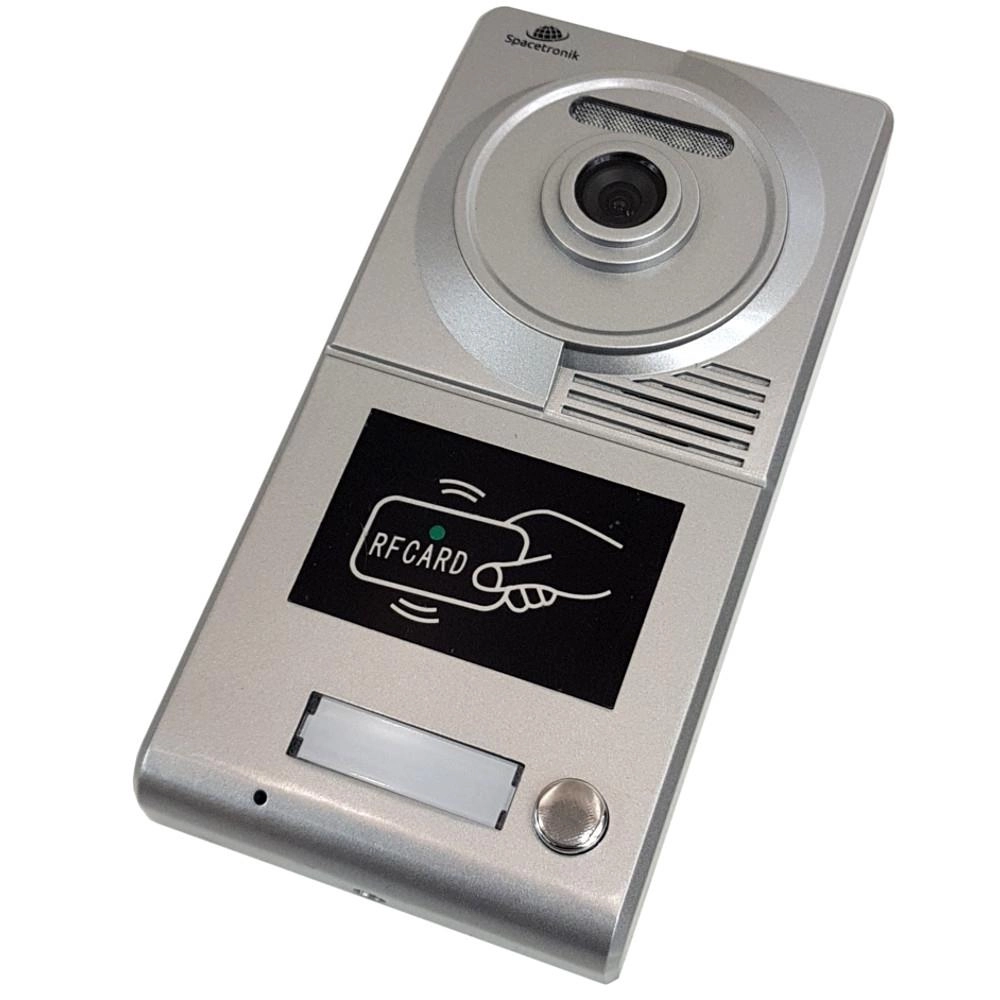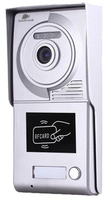 Jednoabonentowy zestaw wideodomofonu z wbudowanym czytnikiem zbliżeniowym RFiD umożliwiającym otwieranie wejścia za pomocą karty lub breloków. Panel wyróżnia się estetycznie wykonaną wandaloodporną obudową ze stopu aluminium, w którą wkomponowany został czytnik zbliżeniowy oraz podświetlany szyld. Do każdego wideodomofonu można dołożyć dodatkowe breloki lub karty, a odbywa się to za pomocą załączonej karty Master. Podświetlenie nocne LED pozwala na komfortowe korzystanie z urządzenia w warunkach niedostatecznej widoczności. W zseatwie znajduje się monitor przeznaczony do pracy w systemie wideodomofonowym dwużyłowym Spacetronik DiO. Wyposażony w kolorowy ekran o przekątnej 4,3" TFT, monitor posiada wszystkie niezbędne funkcje cechujące urządzenia najwyższej klasy. Produkt świetnie nadaje się do zastosowań dla domów jednorodzinnych i małych firm.