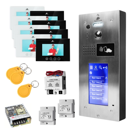 Zestaw wideodomofon ośmiorodzinny z monitorami dotykowymi 7" Spacetronik DiO SPD-D1M1 + 8x SPD-M773B/W