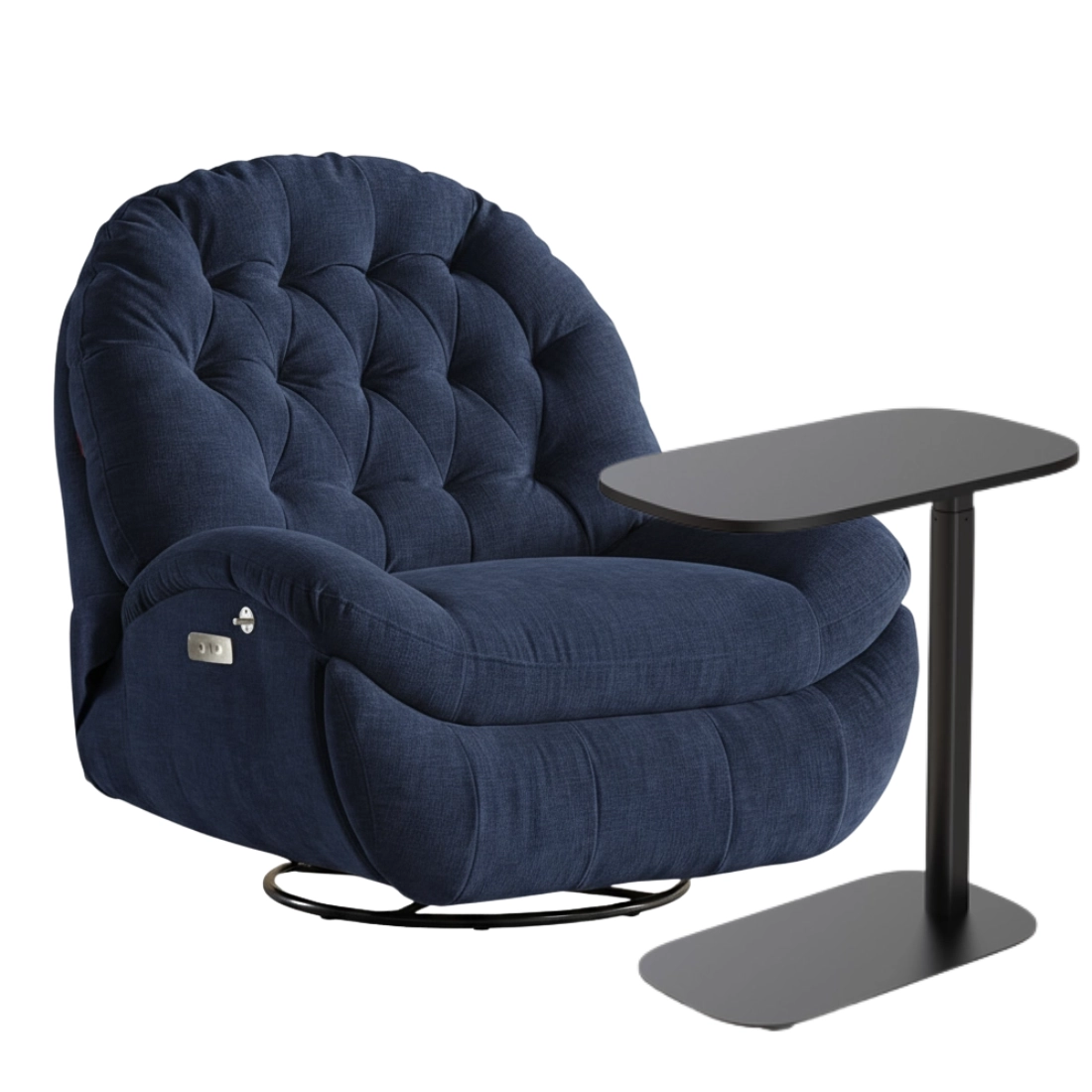 Zestaw: Fotel relaksacyjny Spacetronik FLAX 04 (elektryczny, granatowy, USB-C, Glider) + Stolik pomocniczy Spacetronik BUDDY 17 (gazowa regulacja)